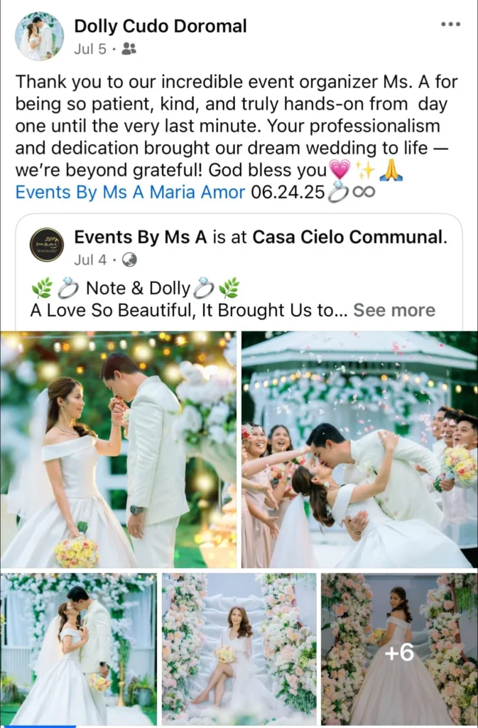 🥰Wla jod mi nagkamali sa pagpili sa inyu as my wedding planner...fully satisfied jd mi sa inyung service. Very professional kaau mo og ang imung mga staffs tpus very accommodating pa jd kaau..